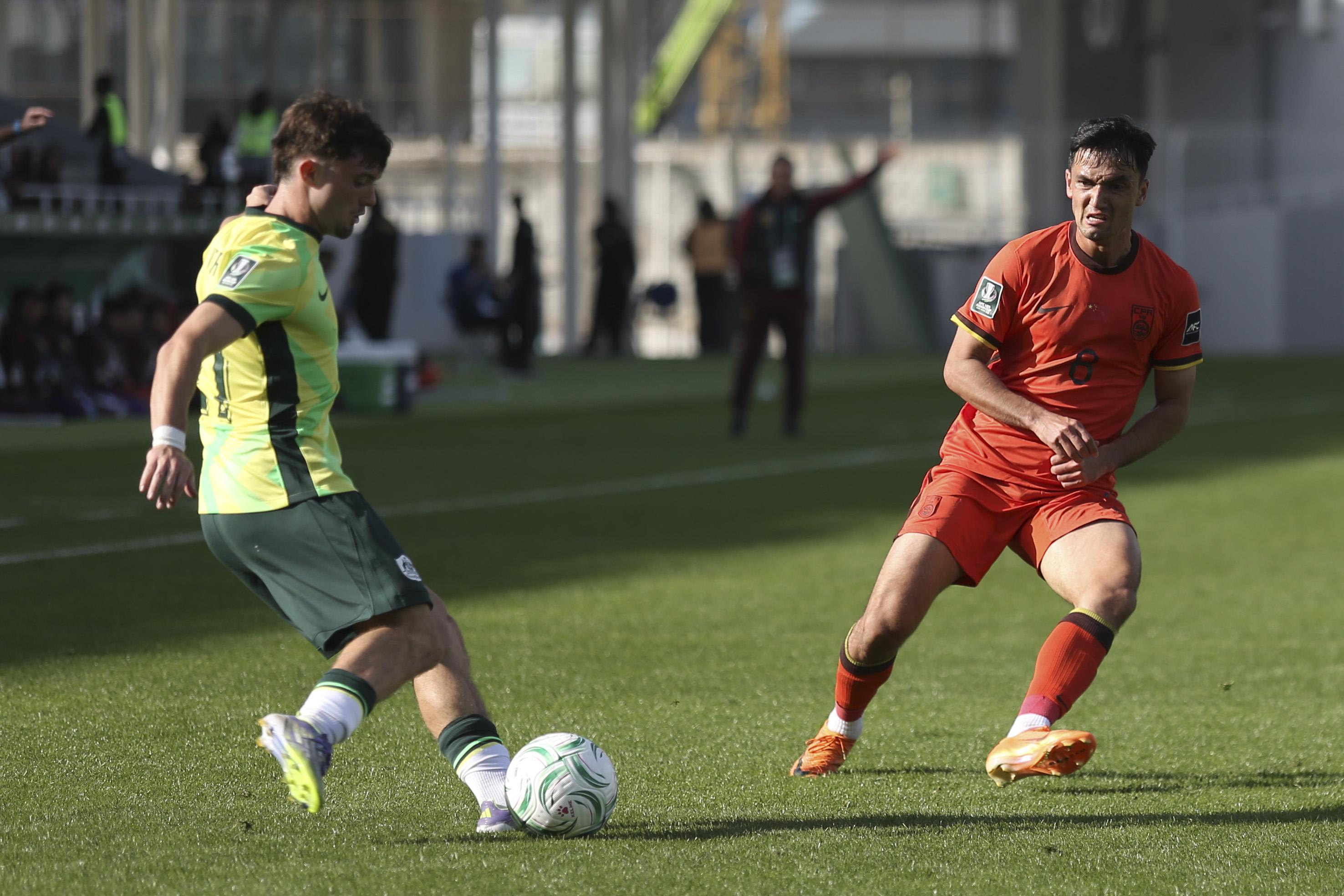 ↑中国队球员吾米提江·玉苏普(左)。新华社记者 张博文 摄